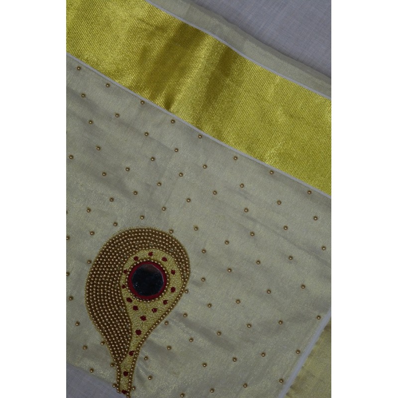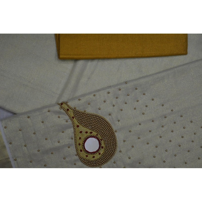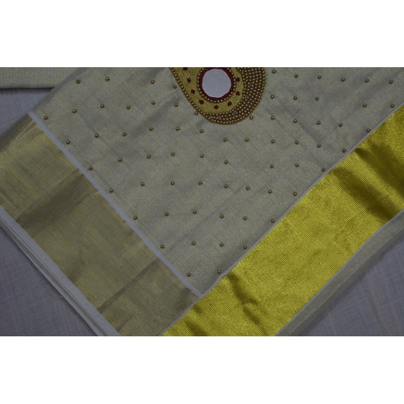 | TISSUE SAREE WITH MIRROR HANDWORK (WITH BLOUSE PIECE) |